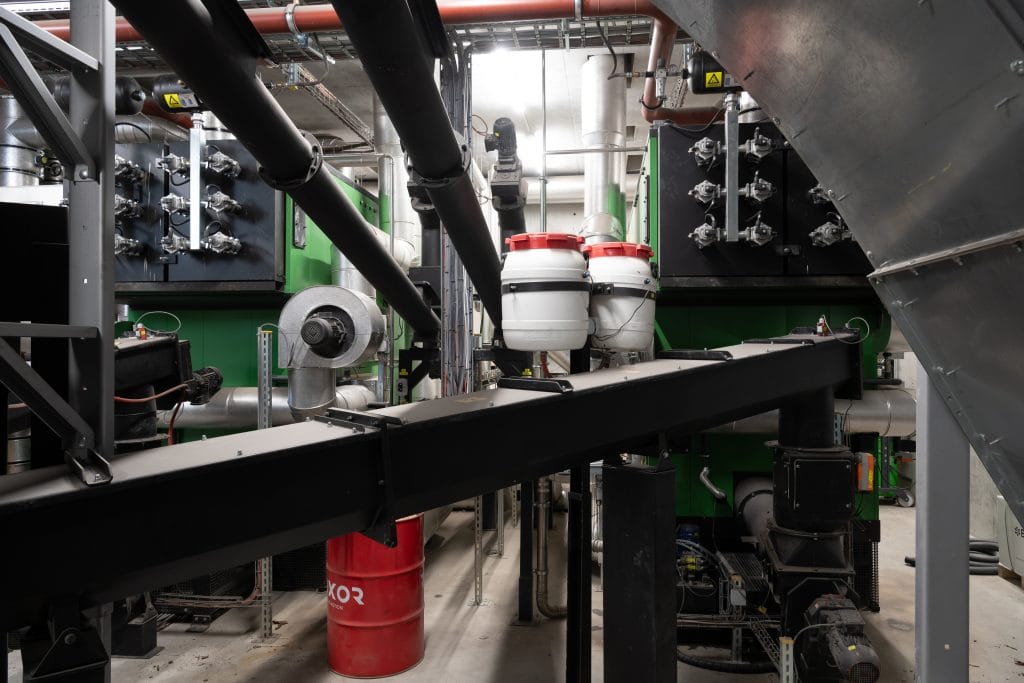 Im Heizwerk wird die Prozesswärme für die Sägerei hergestellt. Diese wird ausschliesslich aus anfallendem Restholz wie Baumrinde und Schlagabraum aus dem Wald produziert.