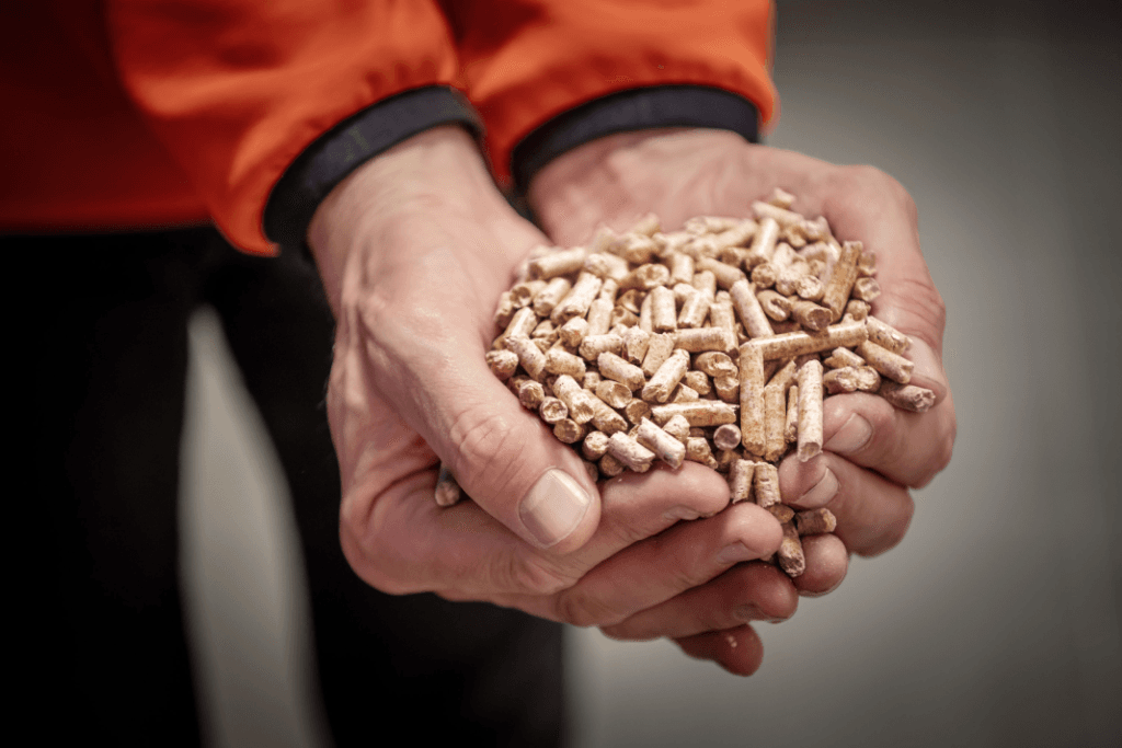 Aus Sägemehl und Hackschnitzeln werden die hochwertigen Resurses Pellets hergestellt. Dieser erneuerbare, sparsame und komfortable Brennstoff hält Gebäude im Winter warm.