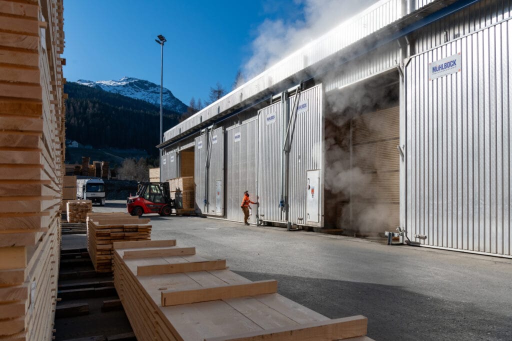 Das Schnittholz wird durch unsere computergesteuerten Trockenkammern gleichmässig und schonend auf die erforderliche Holzfeuchte getrocknet. Für Export ist eine ISPM 15 Trocknung möglich, um chemiefrei jegliche Schadorganismen abzutöten.